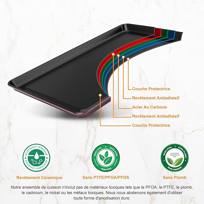 Revêtement antiadhésif de qualité : Conçus en acier au carbone robuste et sans BPA, ces moules disposent d’un revêtement antiadhésif qui permet de cuire sans beurre, huile ou spray. Le démoulage des pâtisseries devient rapide et facile.