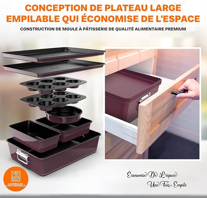 Design empilable et pratique : Grâce à leur conception empilable, ces moules se rangent facilement et économisent de l’espace. Ils sont compatibles avec les fours traditionnels, les fours à convection et les fours grille-pain.